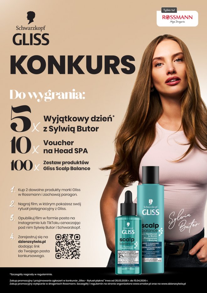 Od dnia 26.03.2026 r. do dnia 15.04.2026 r. trwa konkurs „Gliss – Rytuał piękna”.
