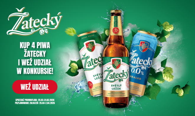 25.03.2026 r. wystartował konkurs piwa Zatecky pod nazwą "Z zateckiego chmielu". Warunkiem udziału w akcji jest zakup 4 piw Zatecky w sklepie Żabka, z użyciem aplikacji Żappka. W aplikacji wyświetlony zostanie kod konieczny do wypełnienia formularza zgłoszeniowego.
